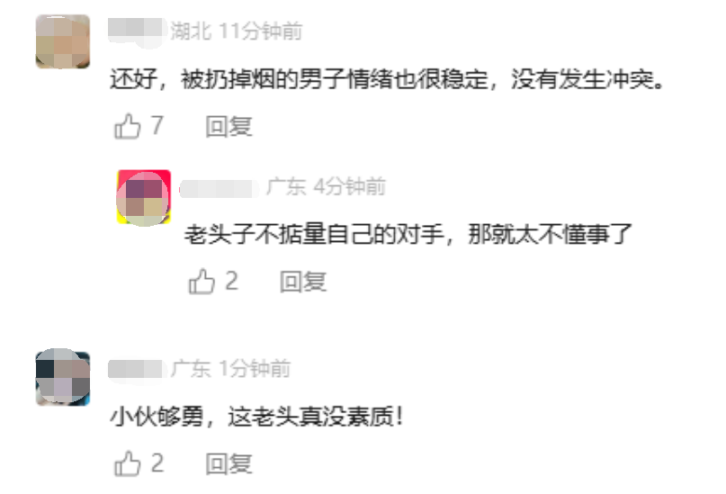 接受采访时,该男子表示,电梯里前面阿姨推着一个小宝宝,后面抽烟大叔进来后正好在他旁边,因为自己家也有一个小宝宝,所以一秒上头,其实初心是好,但是方式方法确实不是很适合,容易激发矛盾,不建议大家模仿,而且乱丢烟这个行为确实也不对。