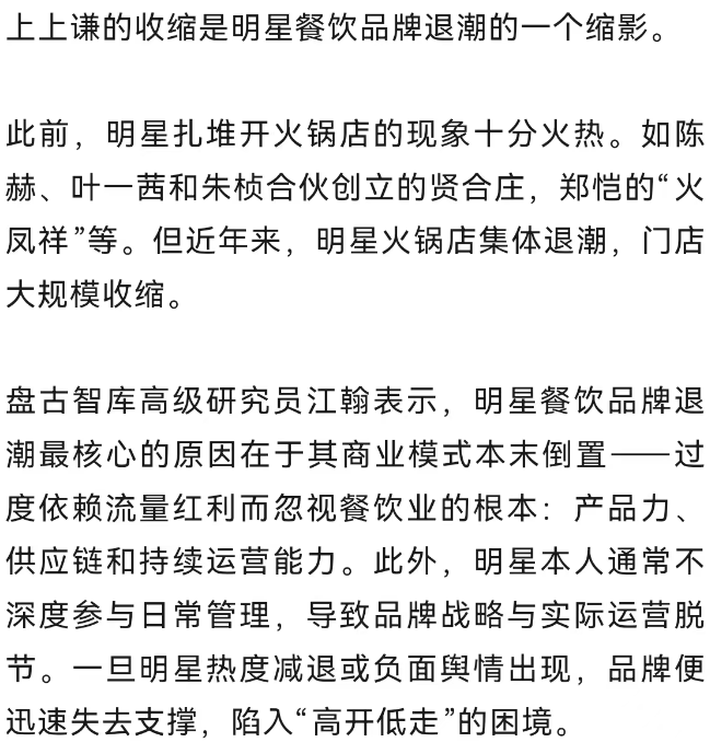 上上谦火锅由明星薛之谦创立,顶着明星IP光环,一度成为热门打卡点。大众点评App显示,上上谦火锅店的评价中,不少人是冲着薛之谦的名字前来消费。