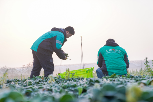 在海拔超1000米的贵州遵义大娄山直采基地,清晨的菜畦里,鲜嫩的菜薹上还凝结着未消融的薄霜,农户们正趁着晴好天气采摘第一茬霜打红菜薹。“这里海拔超过1000米,10月底就开始了第一次下霜,比平原地区早了近一个月,”基地负责人汪老板一边麻利地打包蔬菜一边介绍,“你看这菜叶子虽带着自然褶皱,尝起来却是格外的清甜。”