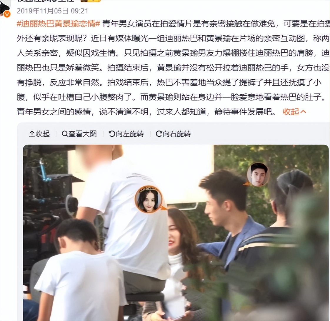 2019 年《幸福触手可及》拍摄期间,黄景瑜与迪丽热巴因戏传出绯闻。